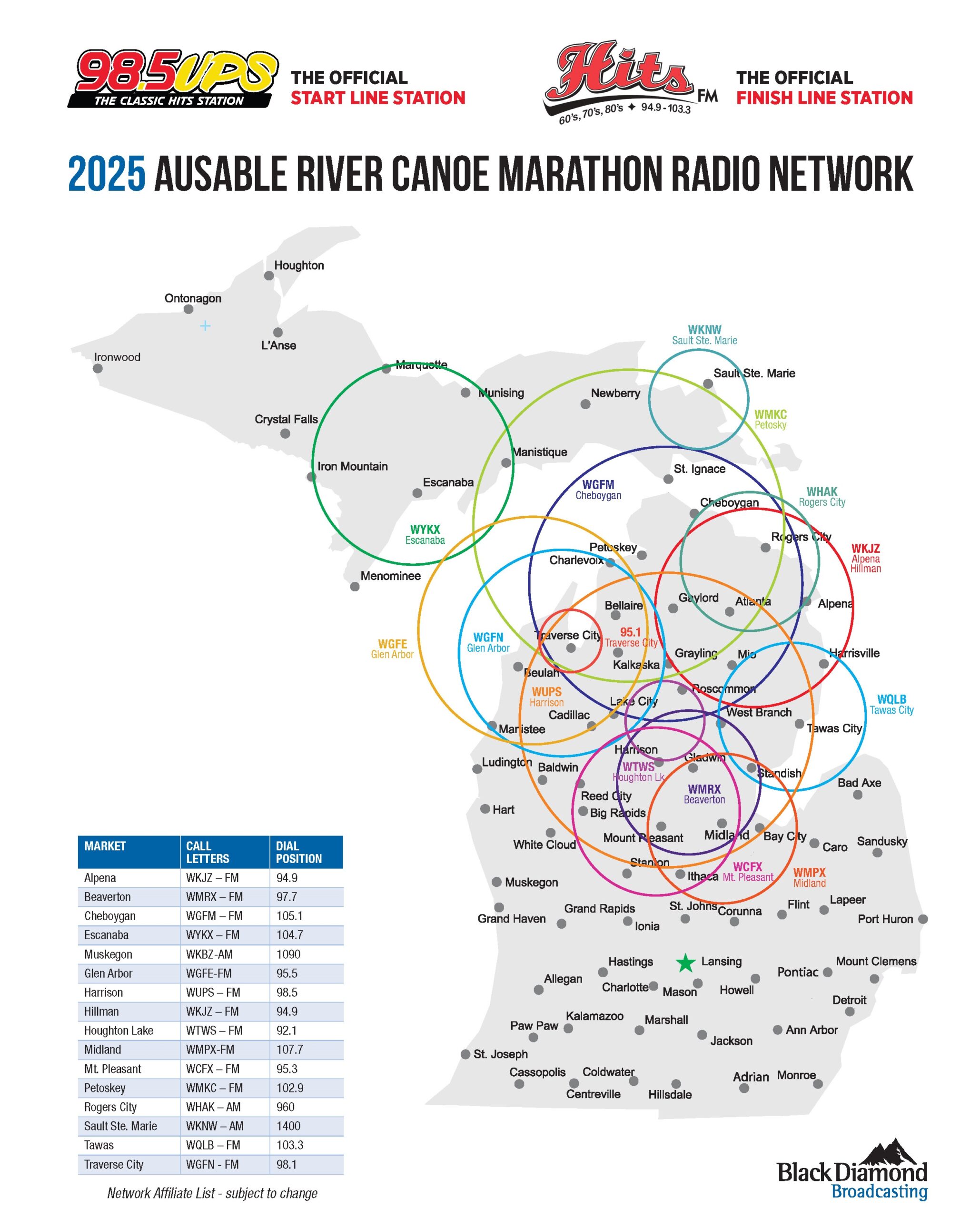 In addition, radio updates are provided throughout the night on the Marathon flagship station, 98.5FM WUPS, and the Black Diamond Broadcasting network. You can view the station coverage map below, and also in the Program Book and Spectator Guide. Be sure to check out our Facebook page and YouTube channel for any race updates or video livestreaming as well.